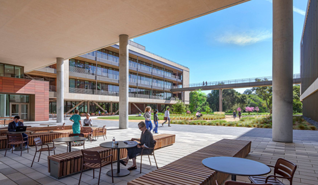 Outdoor cafés or dining spaces offer employees a change of scenery during lunch breaks. Comfortable seating, shade, and landscaping enhance the overall dining experience.