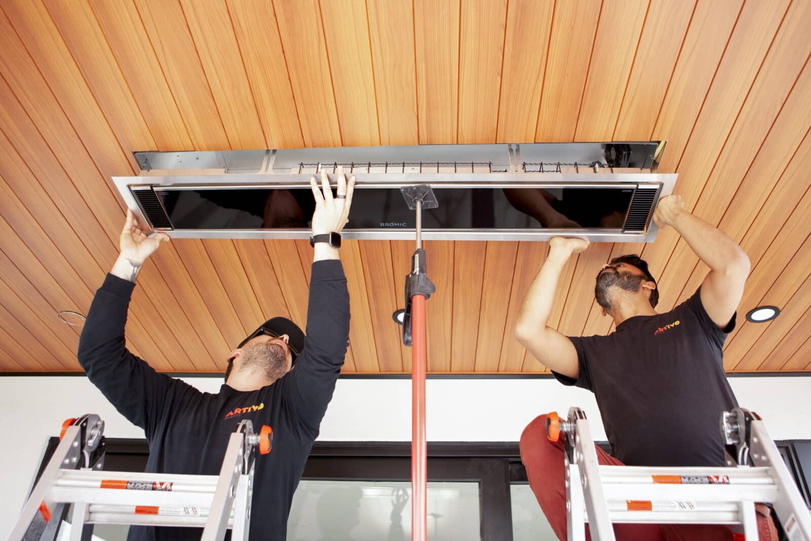 Nikhil Barua, the project manager at Artivo Shades, recently undertook a new build project for a client who wanted to create an outdoor entertaining space that could be used throughout the year. Recognizing the need for outdoor heating while maintaining a minimalist and modern design aesthetic, Nikhil turned to Bromic’s Platinum Electric Collection. This collection stood out for its sleek, seamless appearance and the ability to be recessed directly within the ceiling. Nikhil attests, “Bromic is the only brand that makes good looking recessed heaters. The Platinum Electric heaters are so clean and modern looking that people don’t even recognize them as heaters.”