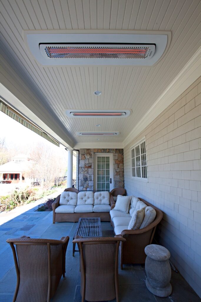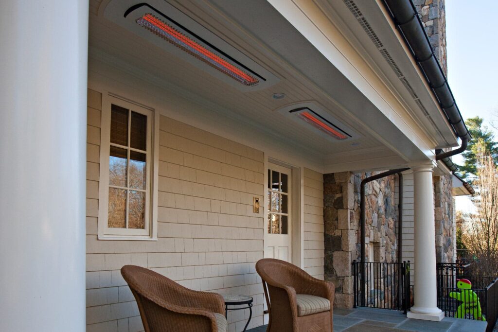 Pouvoir profiter de l’extérieur de la Nouvelle-Angleterre était une priorité pour le propriétaire de cette élégante résidence traditionnelle. Permettre l’utilisation des magnifiques espaces extérieurs une fois le temps chaud passé a été un facteur clé dans la décision d’installer des chauffages électriques blancs Tungsten Smart-Heat (6000W). Associés aux contrôleurs de gradation sans fil et au kit de montage encastré, les chauffages au tungstène sont discrets, transparents et sûrs.